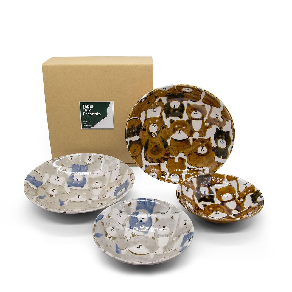 1枚のお皿の中に、柴犬・土佐犬・秋田犬と日本の犬種が大集合!軽量で普段使いもしやすい器です。